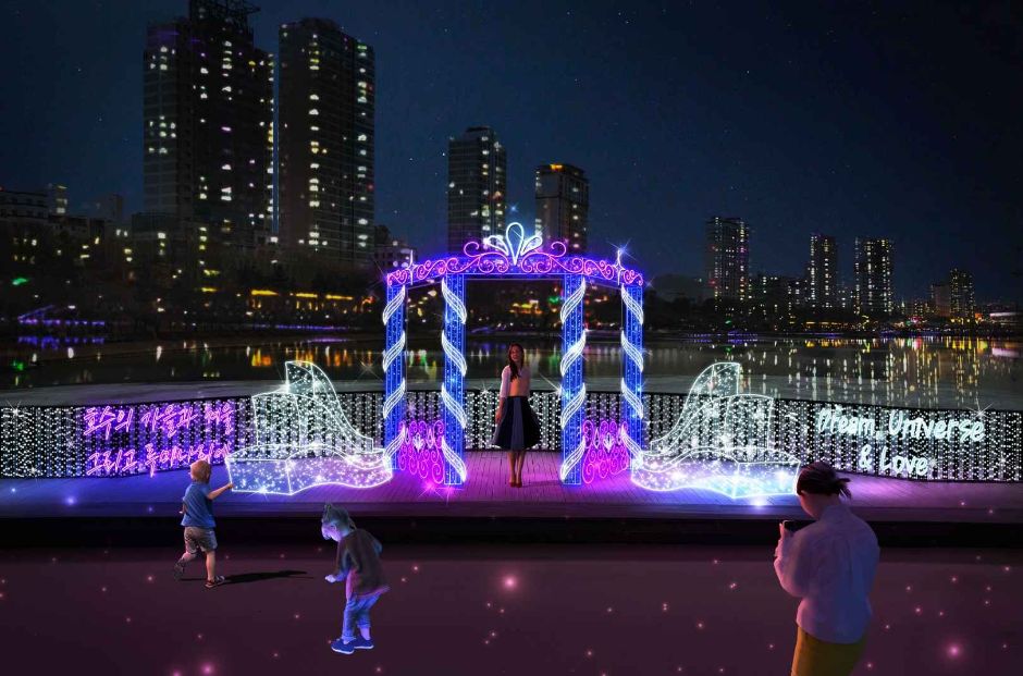 석촌호수의 동호 입구를 시작으로, 빛 터널, 브릿지 게이트, 몽환적인 경관 조명, 다양한 포토존 등이 조성됩니다. 특히, ‘내가 꾸미는 호수’ 코너에서는 주민들이 직접 참여하여 LED 메시지 조명을 제작하고 이를 호수에 설치하는 등 방문객이 함께 만드는 특별한 공간도 마련됩니다.